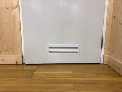 〇Bスタジオの換気扇も有効的に利用すべく、Bスタジオのドアの下部を2cmカットし、Aスタジオの空気を効率よく排気するようにしました。