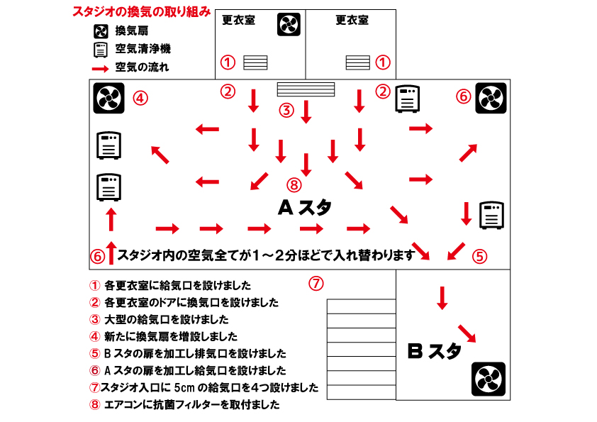 その為にSDSではスタジオ内の換気系を全て見直しました。